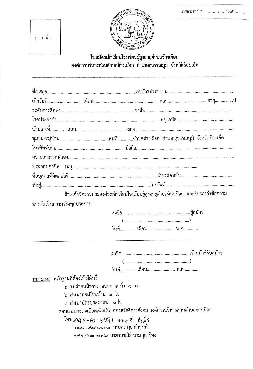 ชื่อเรื่อง : เปิดรับสมัครนักเรียนโรงเรียนพัฒนาคุณภาพชีวิตผู้สูงอายุตำบลช้างเผือก