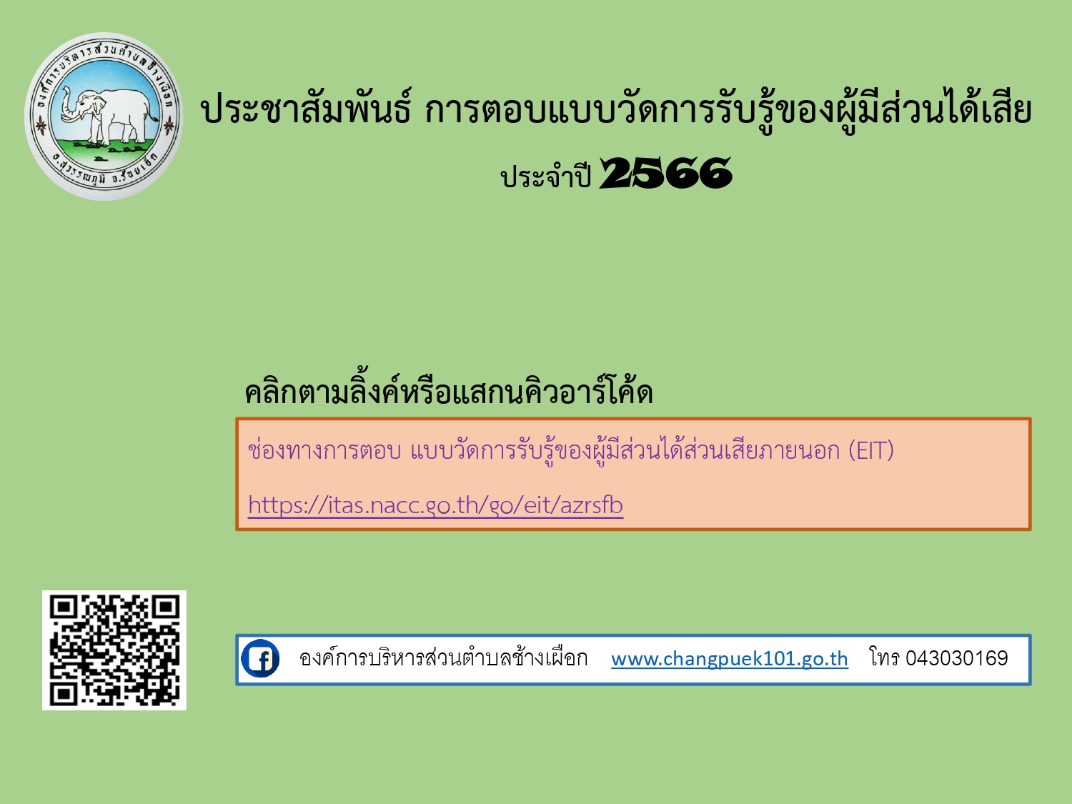 ชื่อเรื่อง : ประชาสัมพันธ์ การตอบแบบวัดการรับรู้ของผู้มีส่วนได้เสีย ประจำปี 2566 ช่องทางการตอบ แบบวัดการรับรู้ของผู้มีส่วนได้ส่วนเสียภายนอก (EIT)