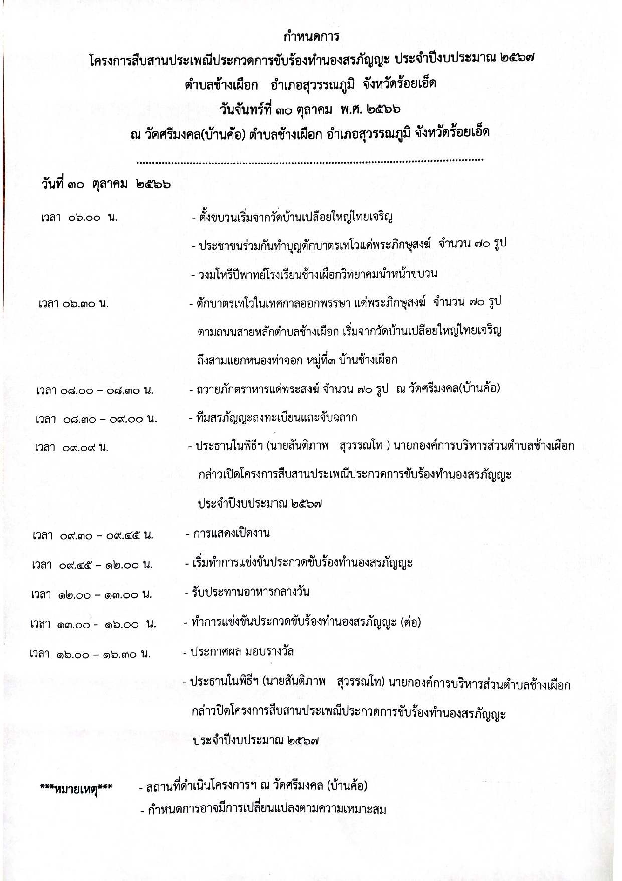 ชื่อเรื่อง : ขอเชิญชวนประชาชนร่วมโครงการสืบสานประเพณีประกวดการขับร้องทำนองสรภัญญะ ประจำปีงบประมาณ 2567