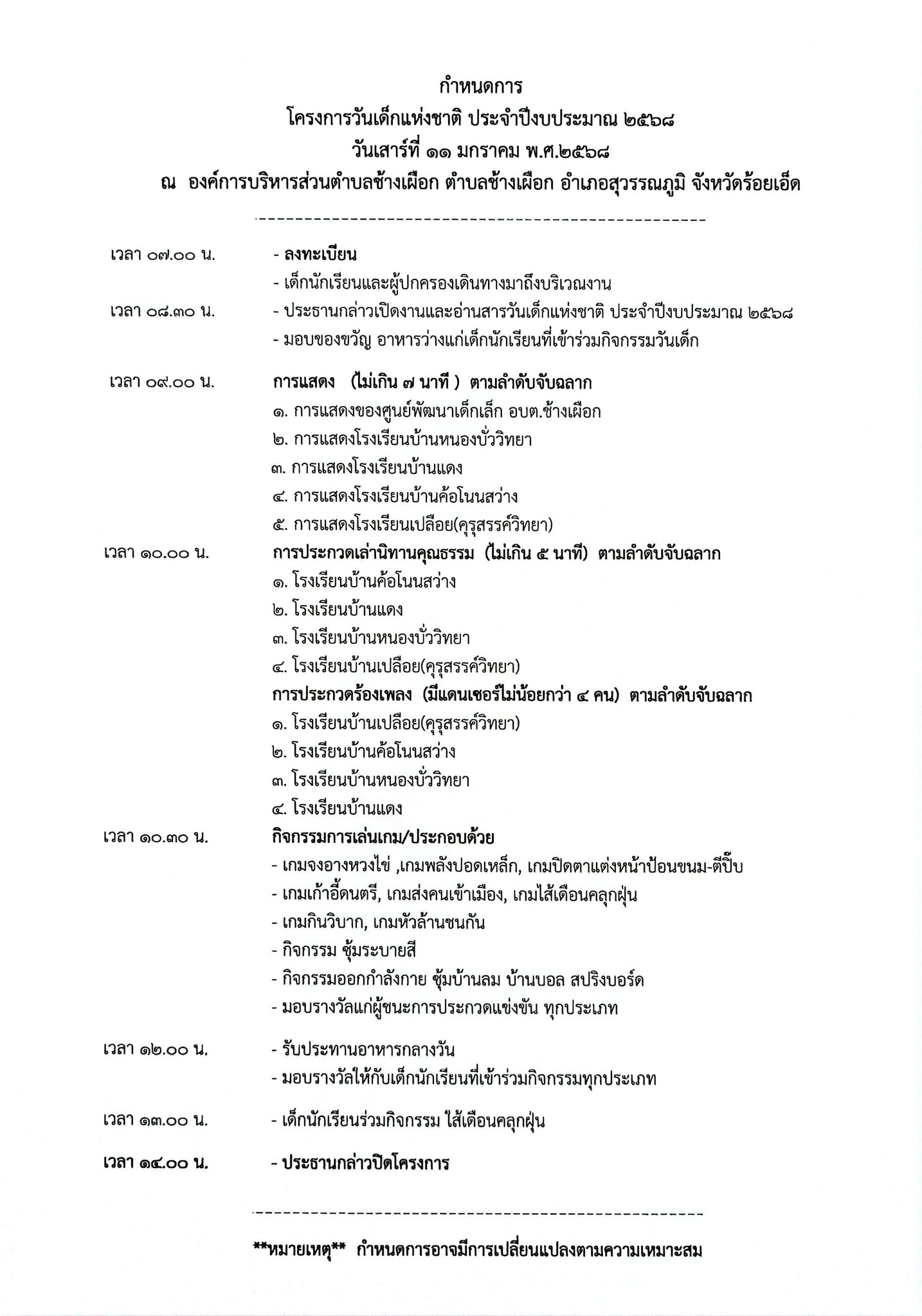 ประชาสัมพันธ์ กำหนดการกิจกรรมวันเด็กแห่งชาติ ปี 2568
